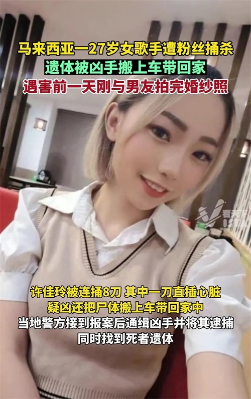 马来西亚27岁华裔驻唱歌手许佳玲遭40岁男粉丝连捅数刀身亡