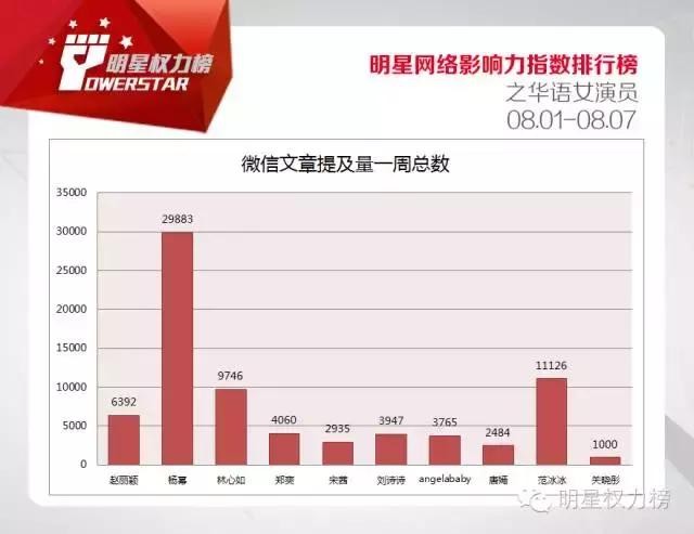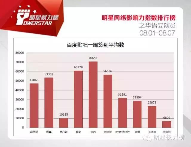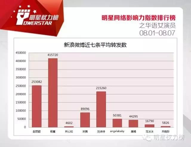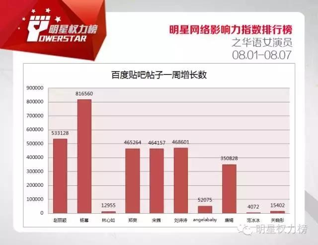 贴吧活跃度、微博互动率、微信提及量第一:杨幂;