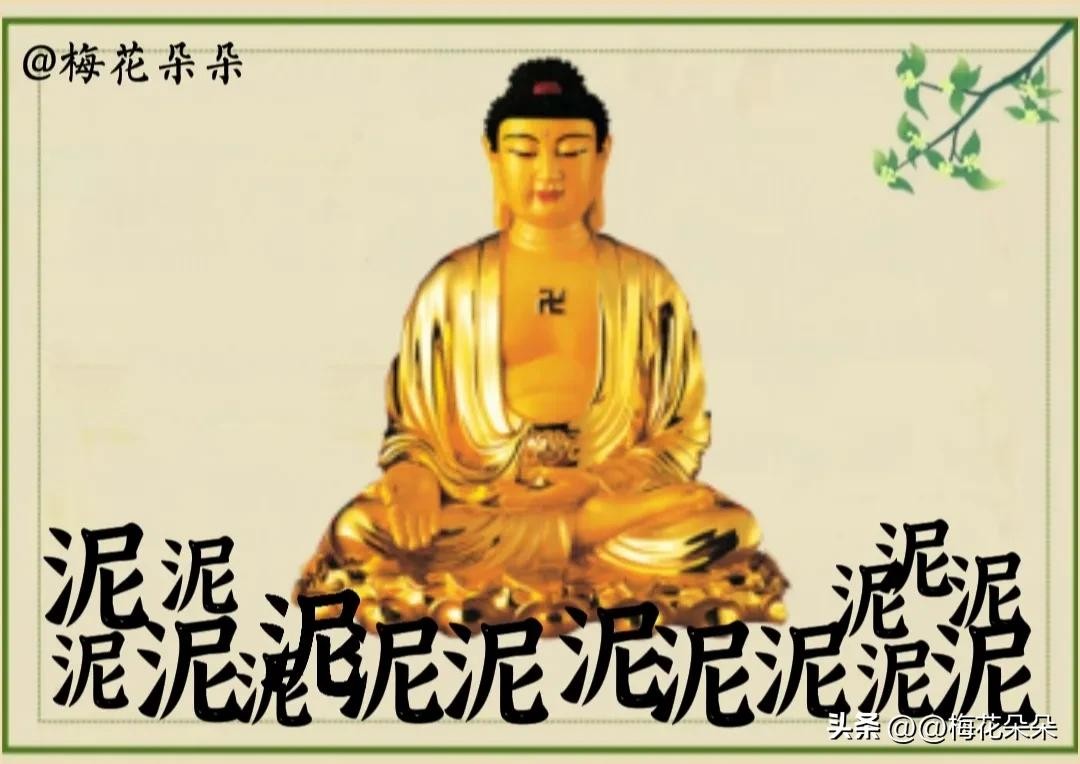 这张图与上幅图有点像,图片上方是坐着大大的金佛,金佛的下面是一排“泥”字,数一数还不少呢。