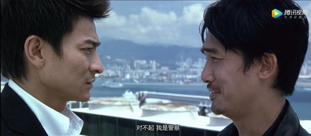 电影中刘建明既是邪恶的混混又是正义的警察,他与身为警察的陈永仁斗智斗勇。而陈永仁明明是警察,却要与黑帮为伍,他的眸中仿佛藏着太多太多的苦衷,但是他从不呐喊,不声张,把所有的矛盾藏在内心深处,让我们看到就心疼。