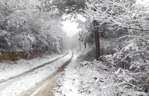 海拔400多米山上,积雪覆盖
