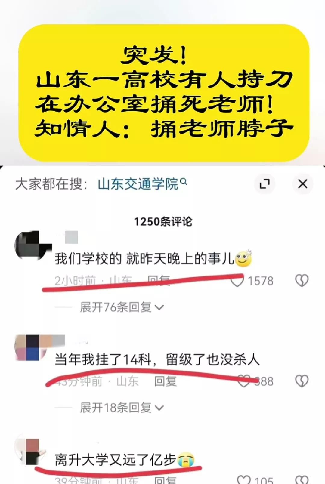 山东高校挂科学生!潜入办公室行凶杀害老师!教育体系深陷危机!