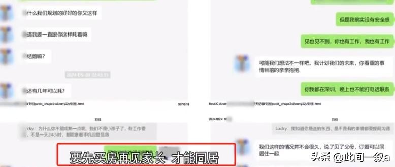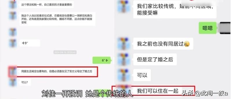 当感情越来越深,阿姚希望两个人能住在一起时,刘佳却委婉回绝了,她声称自己是比较保守的女性,认为应该先买房,然后拜见双方父母,最后才能同居和结婚。