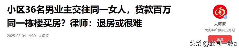 大河报:2025年3月4日《小区36名男业主交往同一女人,贷款百万同一栋楼买房?律师:退房或很难》