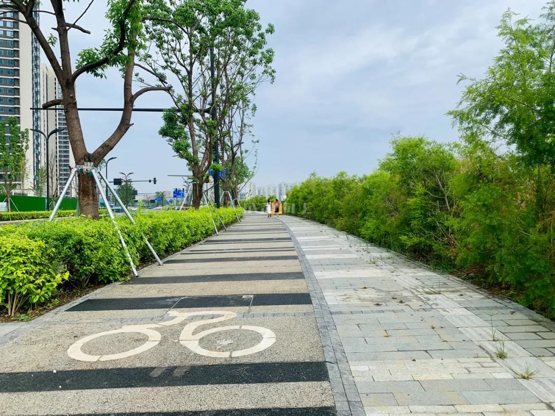 目前B区环湖路为双向六车道,目前已经全线通车,道路两侧路灯、灯牌和绿植早已呈现。值得一说的是,靠近湖区一侧还设有较宽的自行车道。