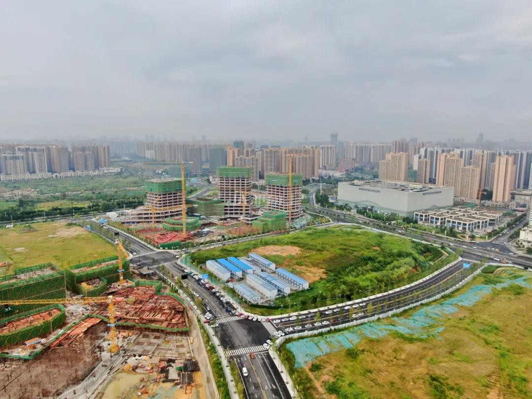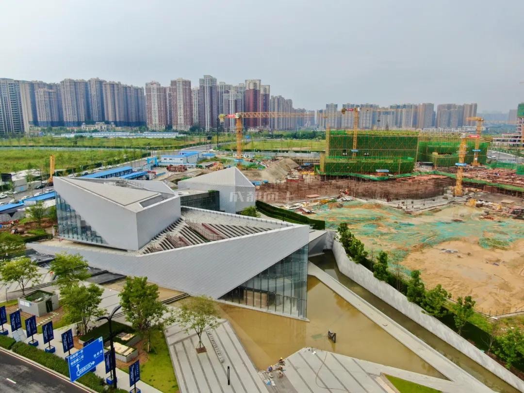 天府梦想城城市展示厅主体建筑在去年就已经呈现,现场主要是细节优化了。而其北侧天府梦想城项目也在施工中。