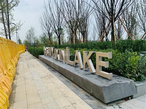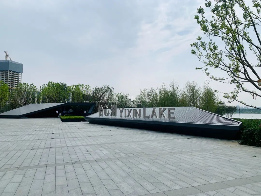 怡心湖正门位于湖区东侧,建筑已经完工挂牌,目前主要是在进行植被种植和修建工作。