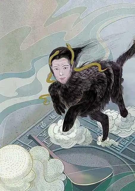 奢比尸:人面兽身,双耳似犬,耳挂青蛇,天气之祖巫。