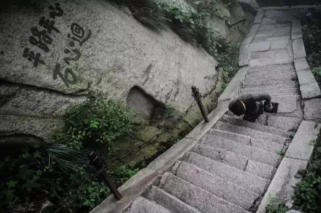 过千尺幢经百尺峡就到了"老君犁沟",其尽头是"猢狲愁",顾名思义,连猴子都发愁,足以说明崖壁有多么陡峭。而过了"猢狲愁"就到了华山北峰。