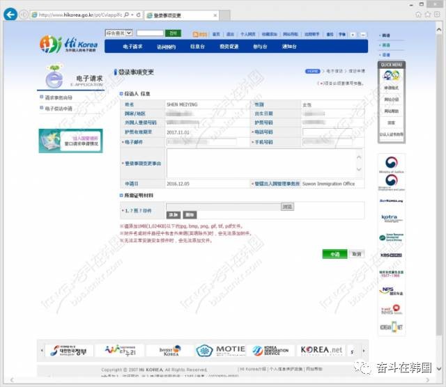 第三:其实有些事务是可以在 hikorea 网站上直接提交材料办理的。比如: 登陆证滞留期限延长许可,滞留地变更申报 和 登录事项变更申报(护照信息变更)