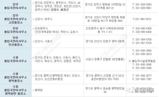 注:各地区出入境管理局管辖区域 请参考以下图片