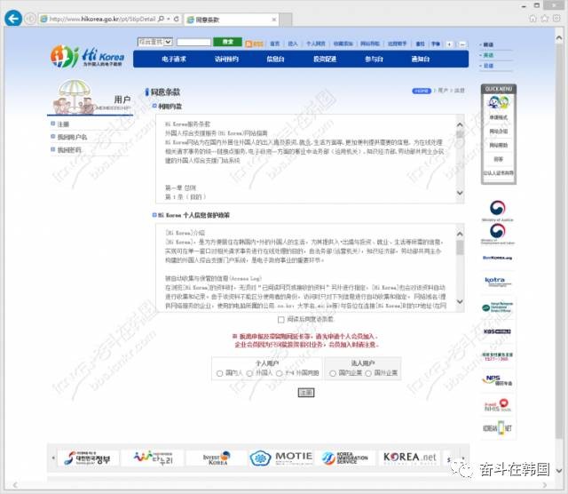 2. 同意条款后 选择个人用户里的外国人 (持有F4登录证的朋友 直接选择 F-4 外国同胞)