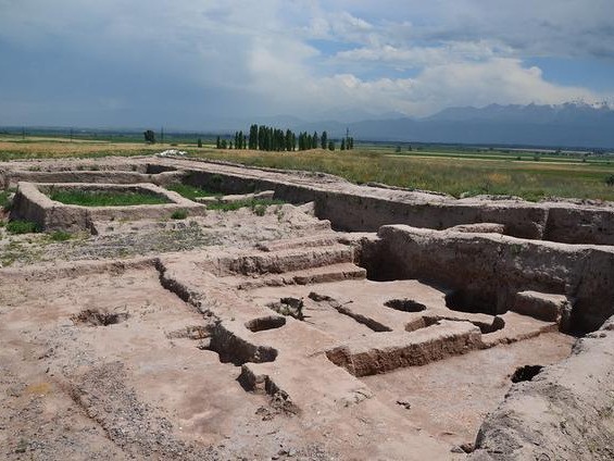 在托克马克市附近6公里的地方,有个如今叫"阿克贝西姆"的村子,它就是汉唐时的碎叶城,也就是李白的出生地。这个碎叶城遗址的发现,在当年可是中亚最大最重要的中世纪考古遗迹之一。