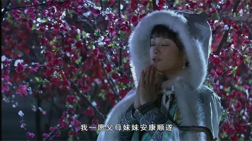 这边嬛嬛刚找到了一处花枝,把小像挂上去,并许愿道: