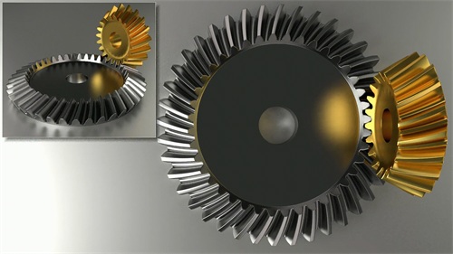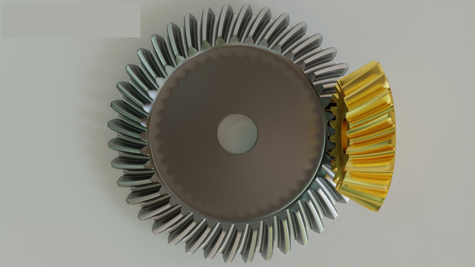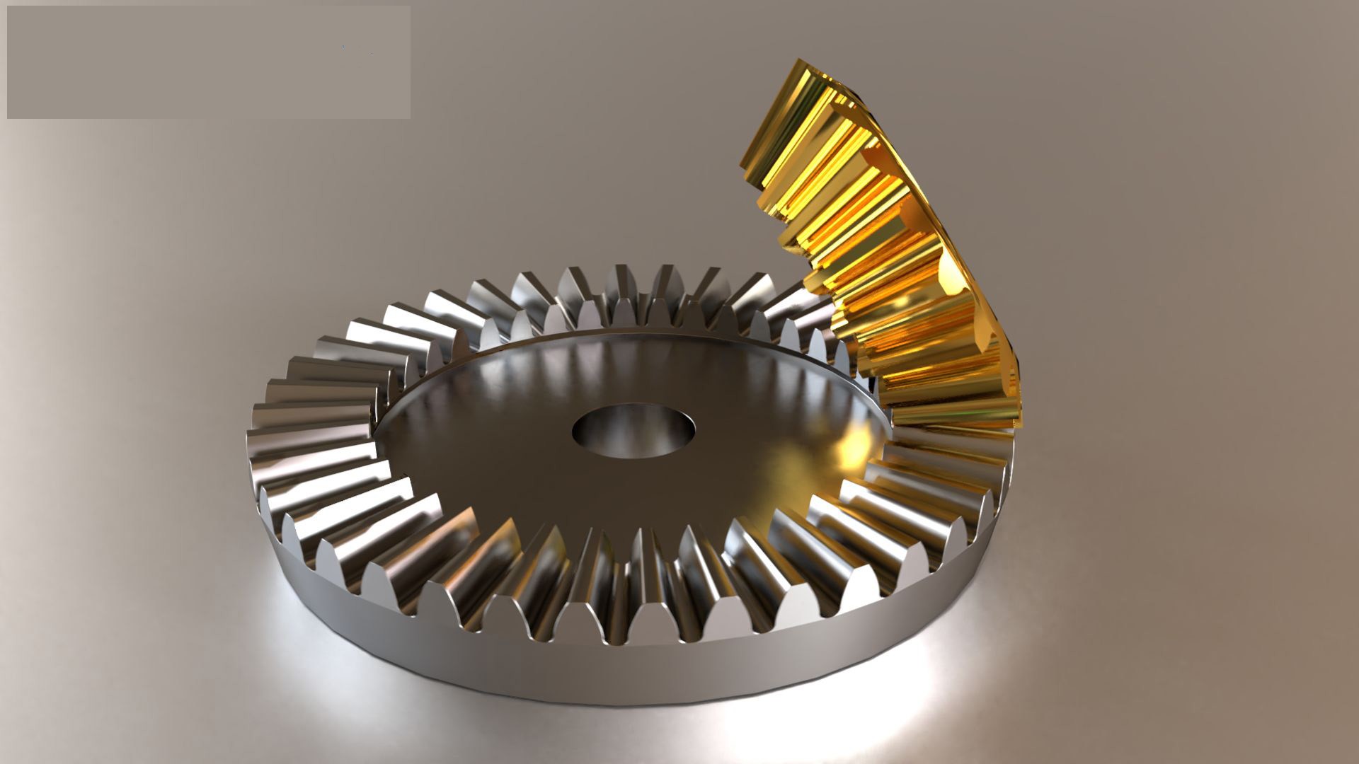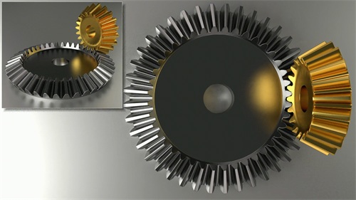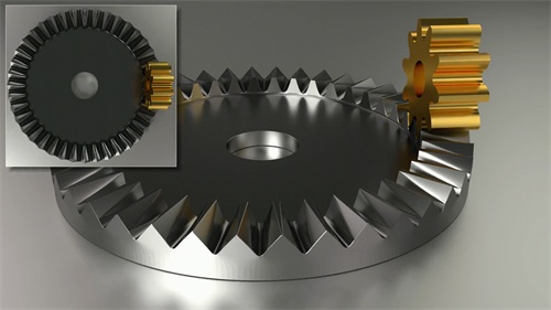 图:平面冠状齿轮(环形齿轮)和常规锥齿轮(小齿轮)