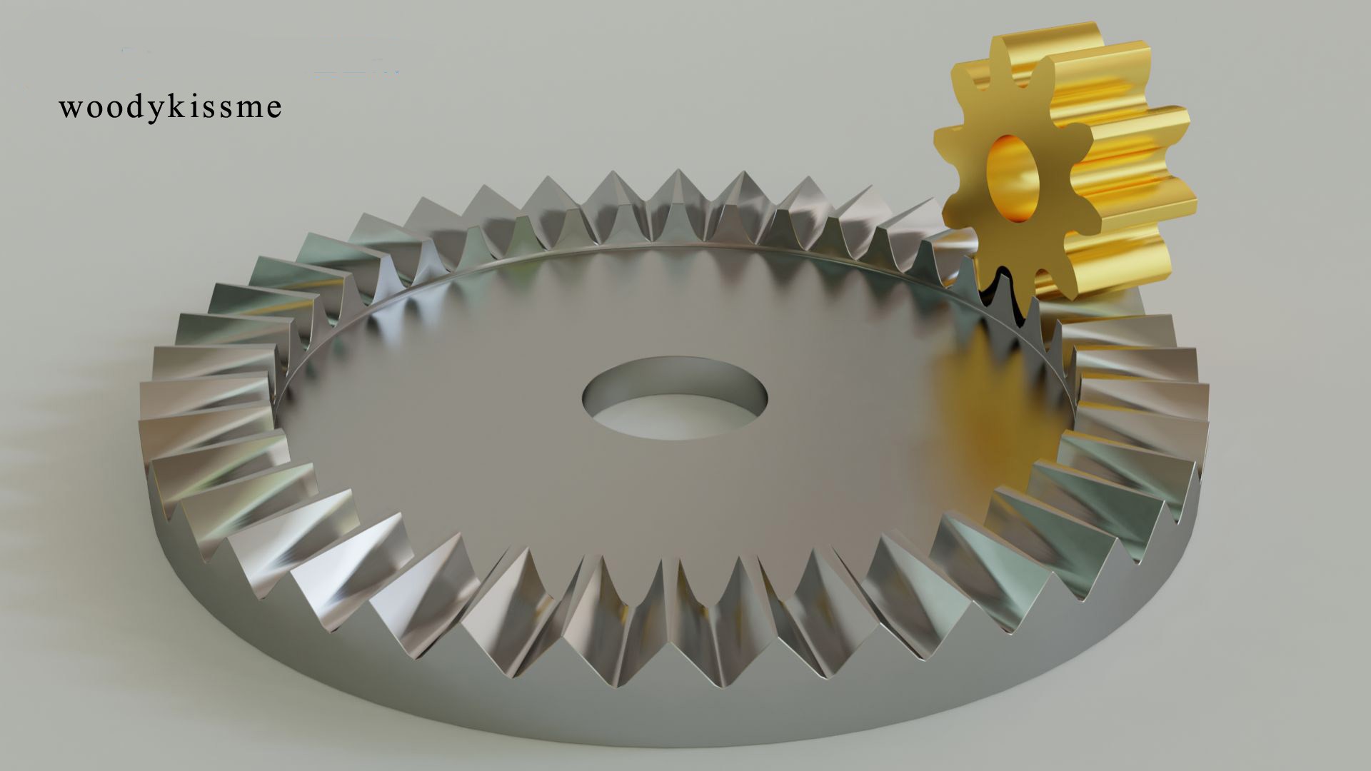 上面的动画显示了一个由传统直齿轮驱动的直齿冠齿轮。与圆锥形的锥齿轮相比,冠状齿轮允许其配合齿轮轴向位移!此外,不会像锥齿轮那样产生轴向力。