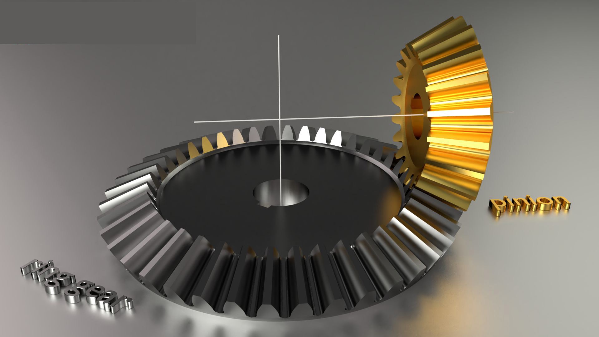 在锥齿轮中,齿轮的轴线彼此成直角。锥齿轮用于改变空间旋转方向。
