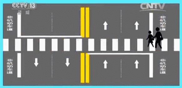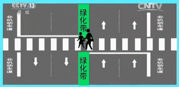 注意:斑马线中间没有绿化带,行人在中间双黄线等待通过,切记让行![赞][赞][赞]