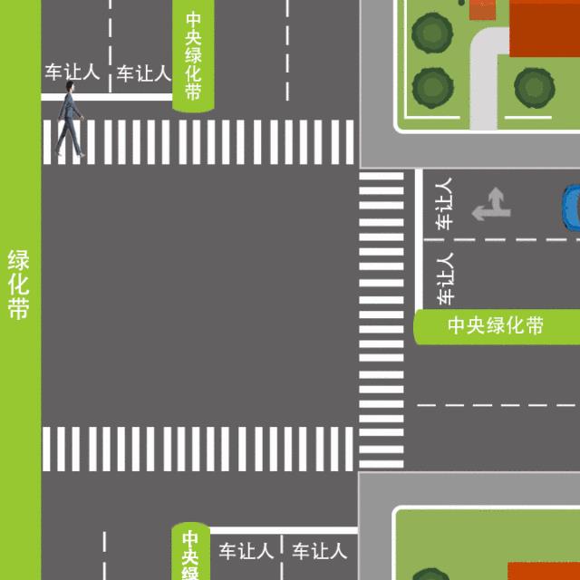 右转弯车辆需停车礼让行人通过斑马线,待行人通过后方可继续行驶