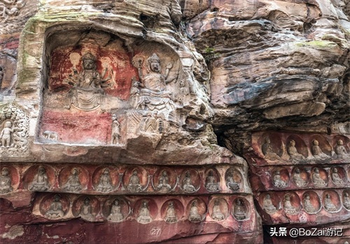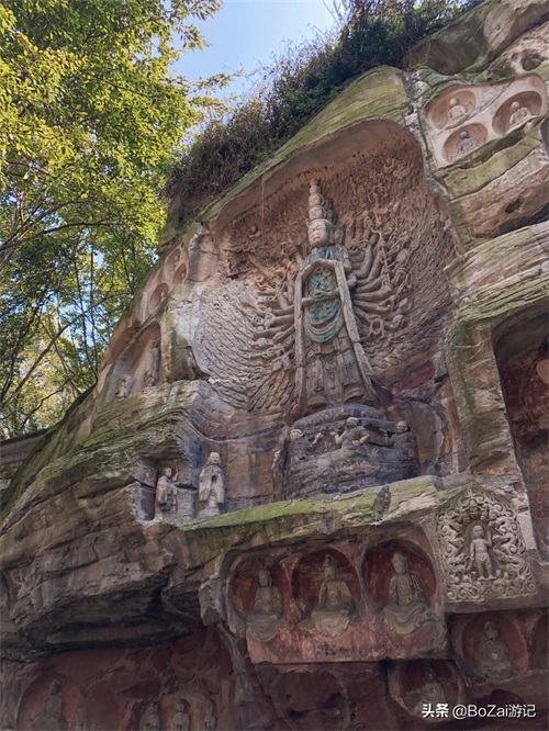 摩崖造像群以千手观音佛像为核心,现存400余尊,多雕刻自明代。佛像大小不一,大者盈丈,小不满尺,但都线条流畅,神态出众。其中“千手观音”“九龙浴太子”“悟道图”“刘海戏蟾”“十八罗汉飘海”等更是上品。