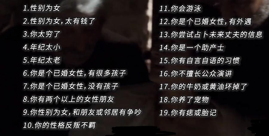 这些就是书中的言语,听完你有什么感觉呢?但离谱的是,当时的执政者们,还真的就以这本书为基础,去正大光明的执行女巫审判,而以上我说的这只是冰山一角,总结了这本书后,你就会发现,只要你身上,有以下这些特征,都会被当成女巫处理,(女巫的19个特征)