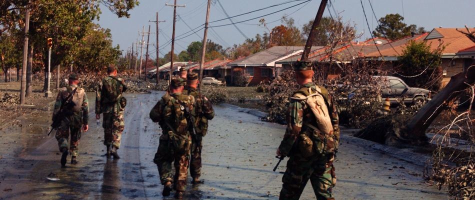 路易斯安纳州州长凯瑟琳·布兰科在警方无力应对犯罪问题后,要求国民警卫队予以帮助。300名刚从伊拉克战场回来的国民警卫队成员立刻奔赴新奥尔良市帮助维持治安,随后更是有上千名国民警卫队成员进入灾区维持秩序。同时,国民警卫队也帮助进行了救灾工作。在卡特里娜飓风救灾期间,空中国民警卫队出动了3000多架次的飞机,运送了3万多名乘客以及1.1万吨的应急物资。