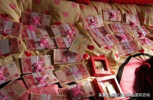 2、在结婚时,男方为了感谢女方家人对女儿的养育之恩,给一点钱表示一下心意。根据各地和各个家庭的不同经济水平,金额也不同。