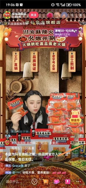 ▲佳仙旗舰店直播带货佳仙锅主重庆老火锅底料