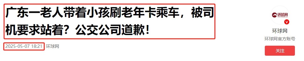 1.环球网-2025.05.07-《广东一老人带着小孩刷老年卡乘车,被司机要求站着?公交公司道歉!》