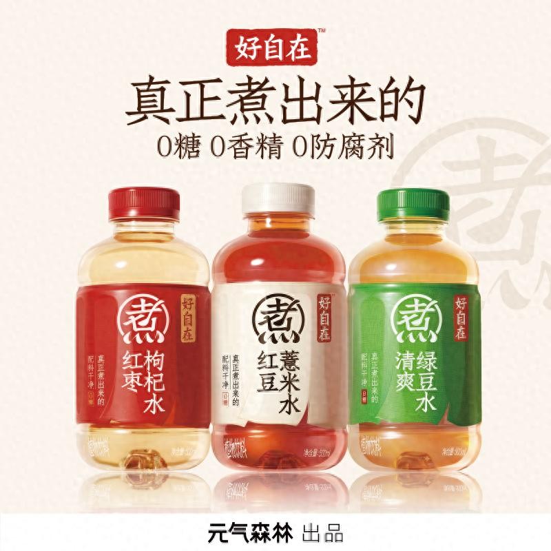 取得这样的成绩,得益于元气森林对养生水市场的洞察,以及对消费者需求的深刻理解。在调研中,他们发现现在的年轻人在追求饮品口感的同时,更加注重健康与养生。家庭中常见的红豆水、绿豆水以及红枣枸杞水,凭借其简单易得、口感清爽的特点,成为年轻人“喝水养生”的首选。于是,元气森林团队决定以“多喝水、喝健康的水”为产品方向,将中国传统药食同源的食材融入其中,打造出既符合现代人口味又健康的“好自在”系列养生水。