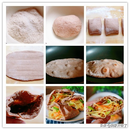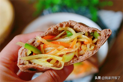5.炒了一盘孩子爱吃的菜,塞入口袋饼里,越吃越香。