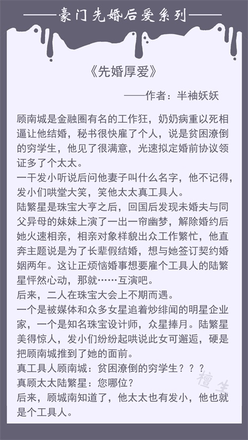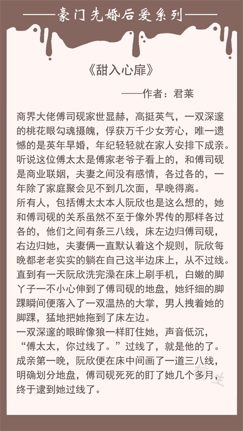 五本豪门先婚后爱文推荐,献给喜欢阅读的书友们!