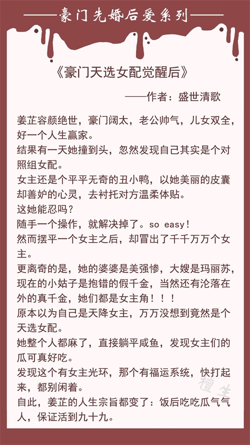 第四本:《豪门天选女配觉醒后》作者:盛世清歌
