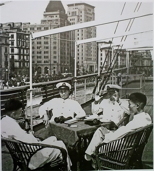 有人能看出图片上这几个年轻人的所在地方吗?他们是在黄浦江的船上吗?从这几个人的制服来看应该是引航员,专门引导外国船只停靠上海港。他们悠闲的坐在椅子上,惬意的享受着日光。