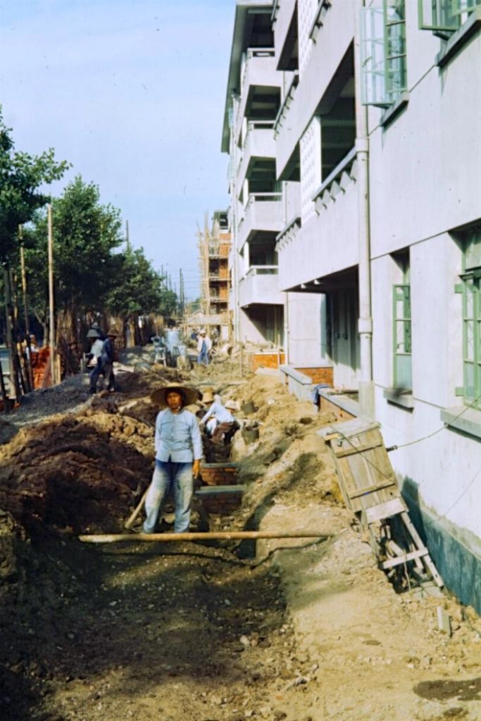 这是一处新建住宅区,工人们正在施工。这片住宅区位于闵行区,至于是闵行哪一个小区,不知道有人知道不知道?当时这片建筑小区楼层不高,只有5层,那个时候中国电梯还没有普及,所以建筑楼层不可能太高。