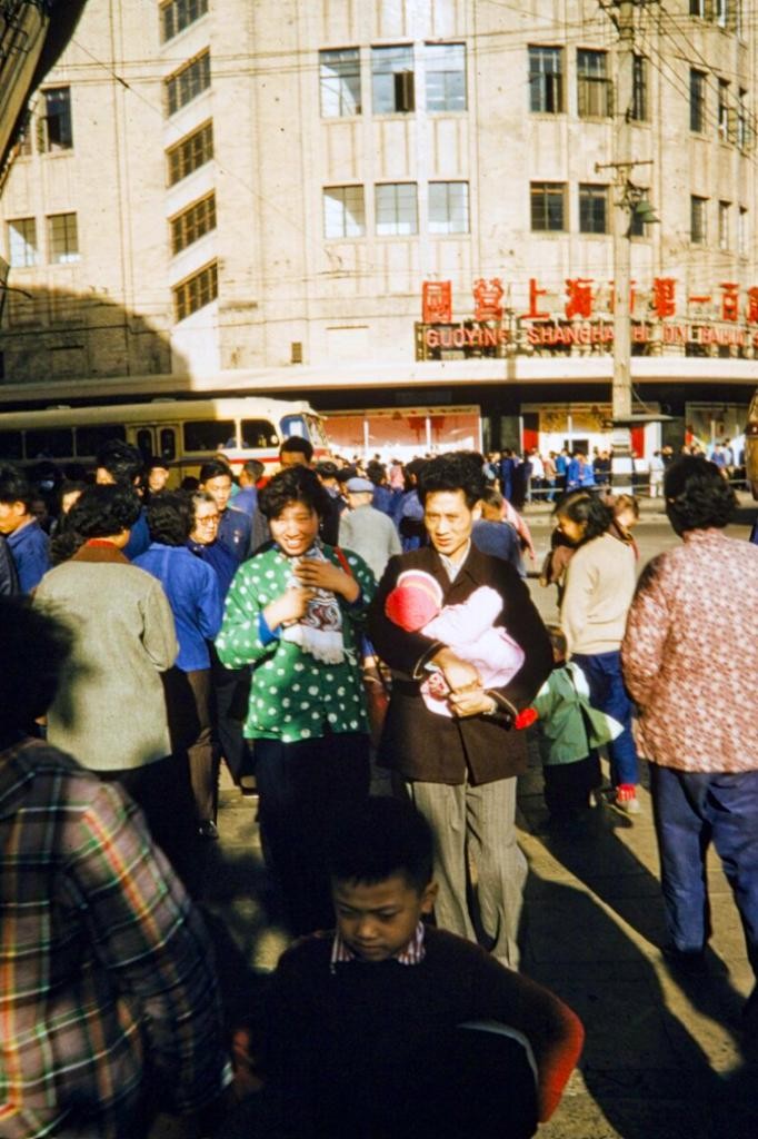 这是上海市第一百货商店的近景照,当时百货商店的门口和街道上挤满了人群,可见这家国营百货商店的火爆程度。我敢说在看我文章的上了年纪的老上海人,肯定当年也在这里用粮票买过东西。镜头前面的那个小男孩或许就是你。