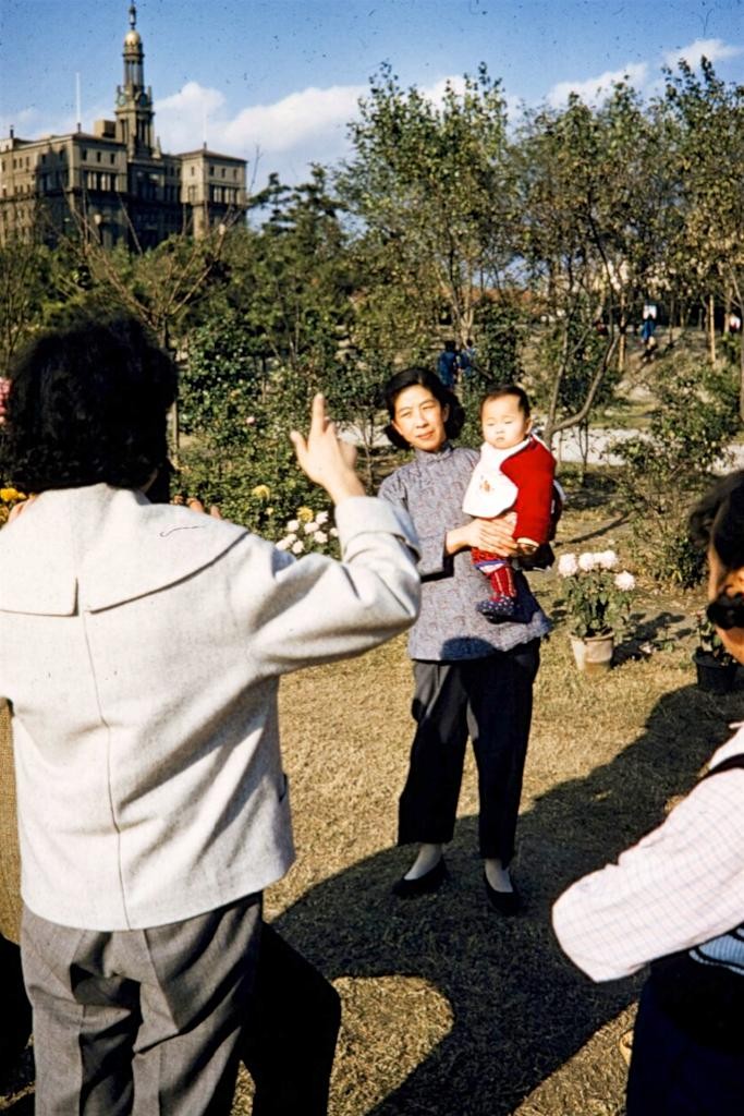 这是一家人在人民公园拍照留念的情景。人民公园刚刚建造完成、对外开放的时候,这里是很多上海人休闲、游玩的场所。因为在上海寸土是金的地方,基本上全是房屋建筑,难得有这么大的绿化公园,很多市民在这里体验到了身心重回自然的感觉。