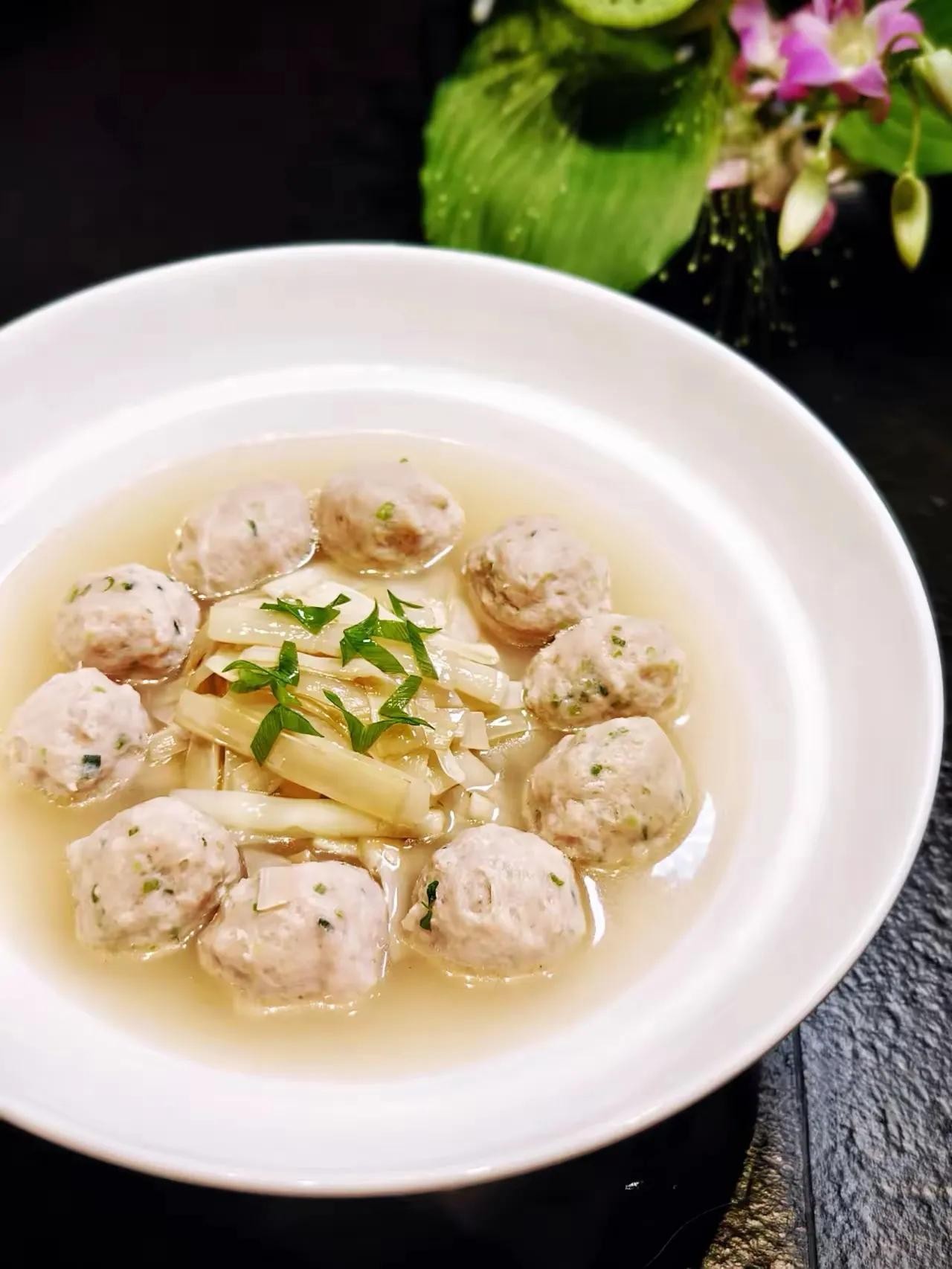 用汤将原料泡熟,特点爽中带脆,如:顺德鱼滑、潮州牛肉丸等。