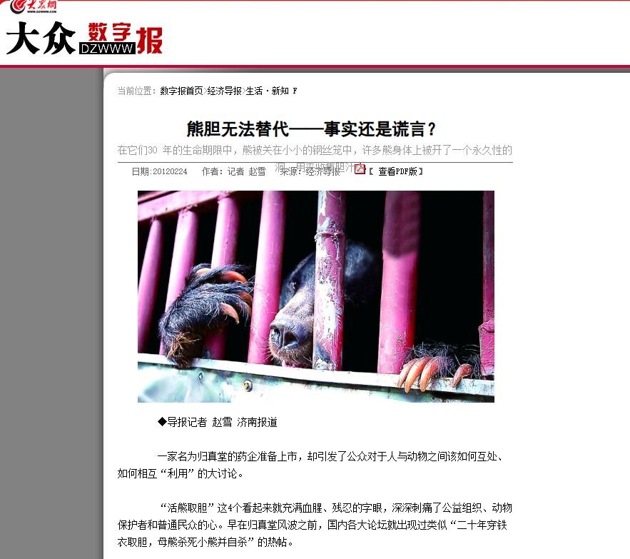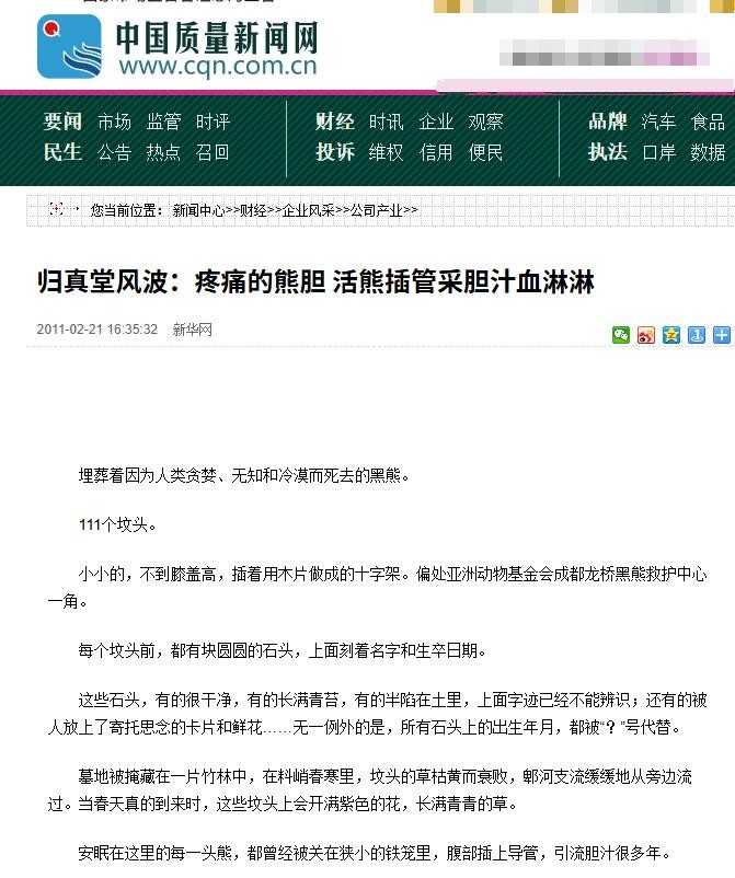 归真堂风波:疼痛的熊胆 活熊插管采胆汁血淋淋 中国质量新闻网
