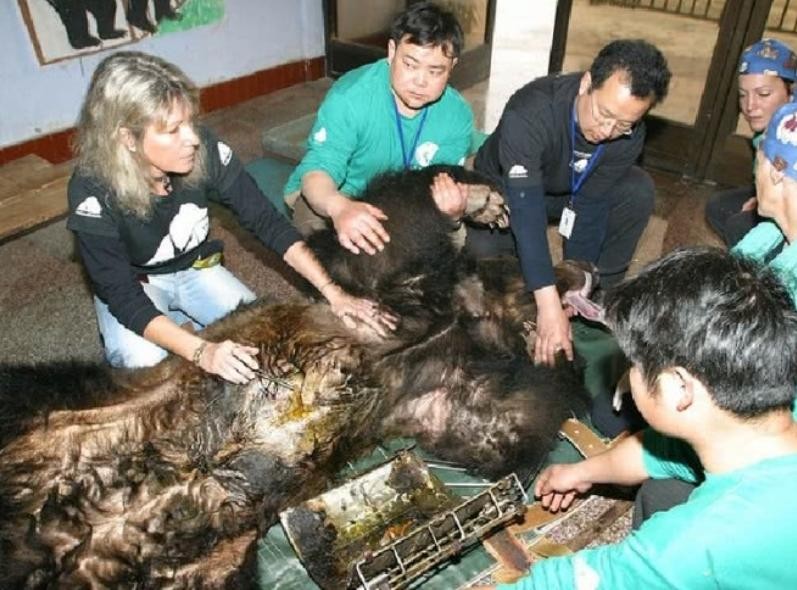 在四川龙桥的黑熊救护中心,兽医的每一次救助都是与死神的较量,那些被解救的胆熊,满身伤病,胆囊因长期插管严重变形、发炎,有的熊腹部创口深可见骨,肌肉萎缩无力。