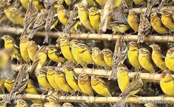 开始的时候只是少量捕捉,一串一串地卖,到了后来“壮阳”谣言广为流传,精明的商贩们开始一只一只卖,价格被炒到了一只70-80元。于是广东的黄胸鹀已经不能满足需求,华北华东的鸟贩子们动起来了,他们在郊区架设天罗地网,捕捉路过的黄胸鹀。