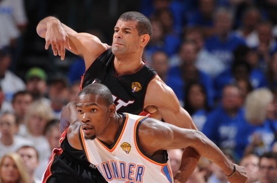 2011年12月,巴蒂尔加盟热火。2012年与雷霆的5场总决赛,他场均拿下11.6分3.4篮板,命中率61.3%,三分球合计26投15中,三分命中率57.7%;防守端他主要和杜兰特对位。不过KD依然有场均30.6分6篮板2.2助攻1.4抢断1封盖的表现,命中率54.8%,三分命中率39.4%。