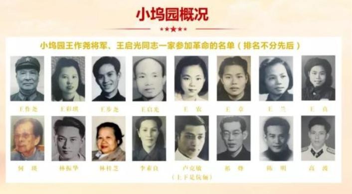 原广东省第四届政协委员王启光和开国将军王作尧,兄弟二人投身于革命后,积极动员身边的亲友投身于革命,因此,造就了王家共有16人投身革命,并立下赫赫战功的英雄事迹。