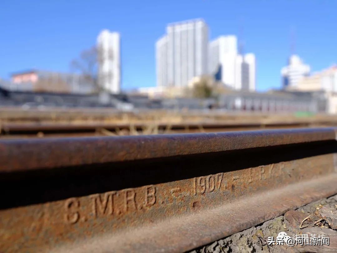 音犹在耳,百年已过,而当时铺设的钢轨还依然完好静笃地坚守在它最初的位置上。历史上,铁路的发展与钢铁工业的进步几乎是同步的,而张家口老站的站场里,随处可见的刻有不同时期、年份、生产厂家等铭文的钢轨,随处可见。詹公天佑修建京张铁路使用的钢轨大多是美、英、法、德、比利时等国家生产的,在老张家口站场内看到,保存最好的是1907年英国生产的钢轨,厂家在钢轨上铸刻了1907· I P K R的字样。1907表示修筑年份,I P K R分别为“官办”(Imperial皇家)、 北京(“韦氏拼音”Peking)、 张家口的国际称谓-卡拉干(Kalgan)、铁路(Railway)的词头,意为官办京张铁路(IMPERIAL PEKING KALGAN RAILWAY)的英文缩写。你还可以清晰地看到,1908、1914、1936、1948年等各时期的钢轨,由于钢轨材质含量不同,历经岁月呈现的状态也不同,有的锈迹斑斑,有的结痂脱落,有的光彩熠熠。当我穿梭在每节钢轨相连的地方,捕捉到它刻有不同铭文的生产国家、厂家、时间,看得清或看不清的印记,我被这些不同时期的工业遗产所感动,就如同快速在时光机里穿梭,索引着那个年代的重大时事。老张家口站保存完好的钢轨,宛如一部铁路钢轨发展史,真的有助于中国近代铁路工业考古、文物研究、历史挖掘。