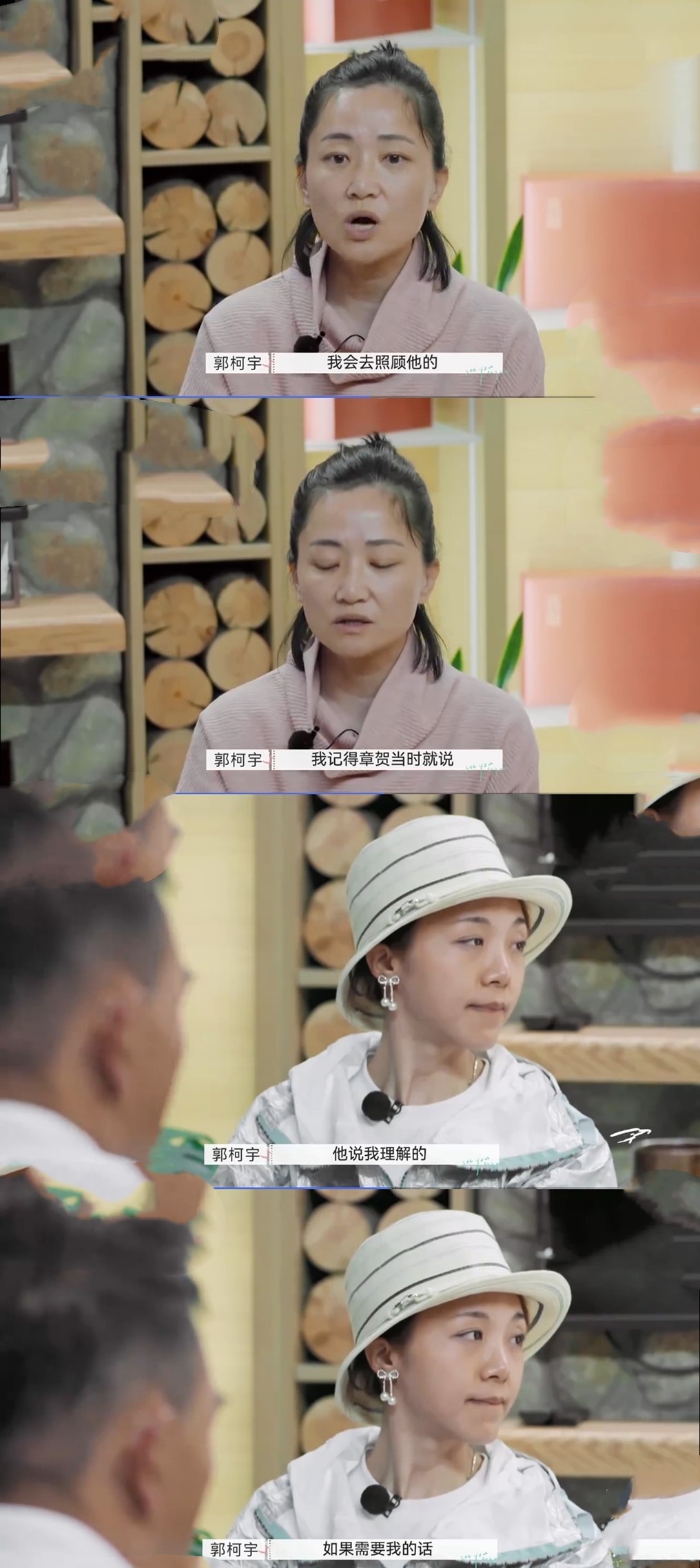 《再见爱人》有一期采访节目。郭柯宇提到了自己的前任,比自己年长许多,在她各个方面都给她各个方面的影响与帮助。她的那个前任没有结婚,得了痛风。在他们婚姻存续期间,她要去照顾前任,章贺同意了。