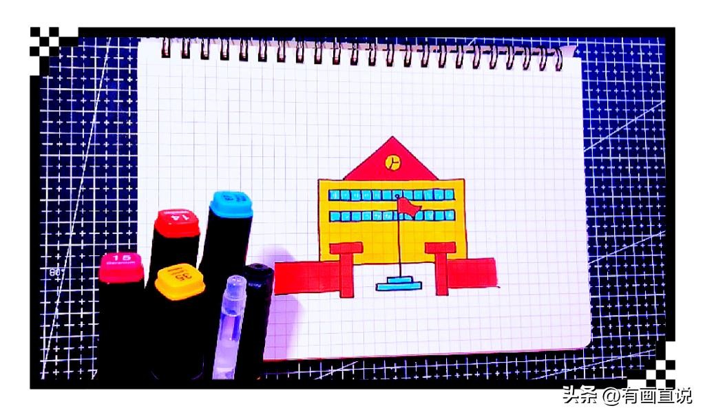 课程主题:学校画法第8款绘画风格:线描简笔画绘画工具:铅笔 勾线笔 马克笔 高光笔 白色卡纸适合人群:4-12岁少儿 家长 老师文中包括:视频教程 图文步骤 临摹素材教学目的:学习简单建筑物的简笔画画法。培养,锻炼自己的控笔,造型,审美能力