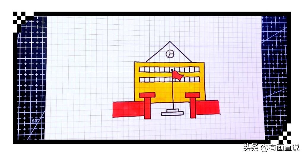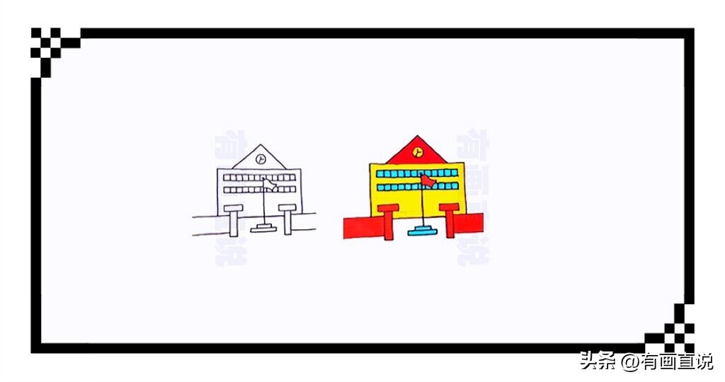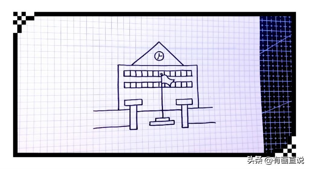 「简笔画绘本」学校画法第八款 视频教程+图文步骤+临摹素材