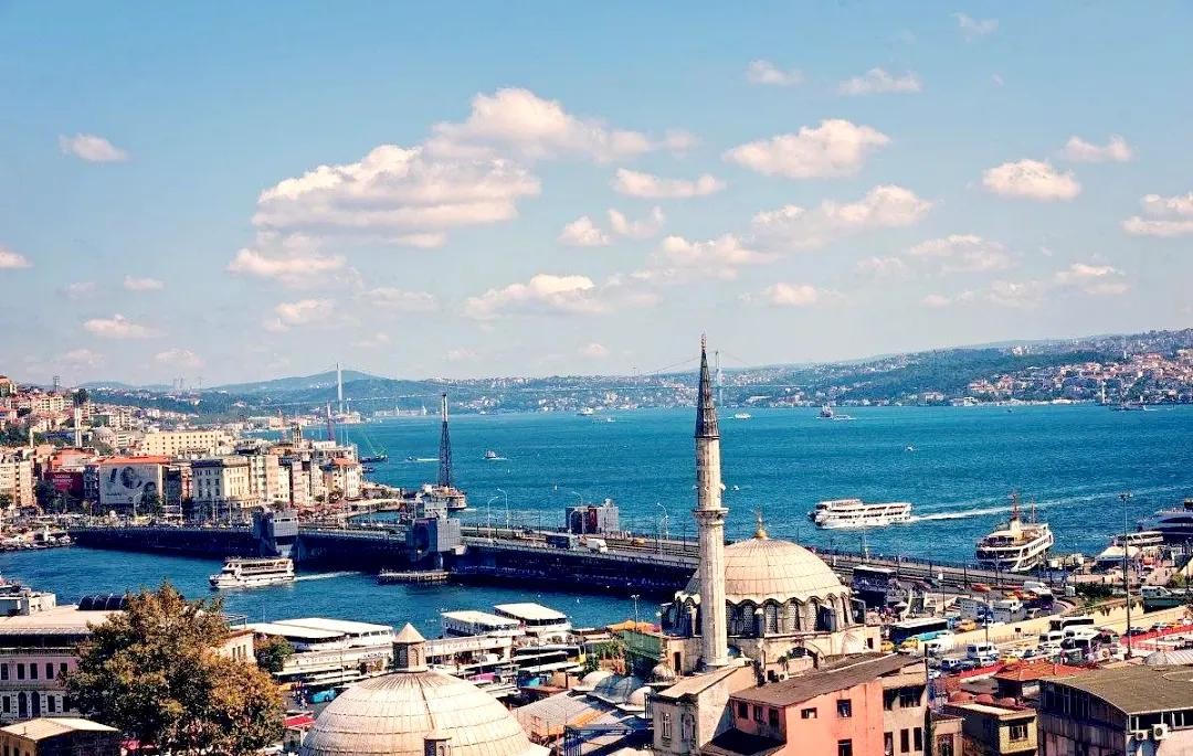 博斯普鲁斯海峡又叫伊斯坦布尔海峡,北连黑海,南通马尔马拉海和地中海,就是他把土耳其分成亚洲和欧洲两部分!可见两岸树木葱郁,村庄、游览胜地和住所星罗棋布,乘坐游轮观赏日落胜美!