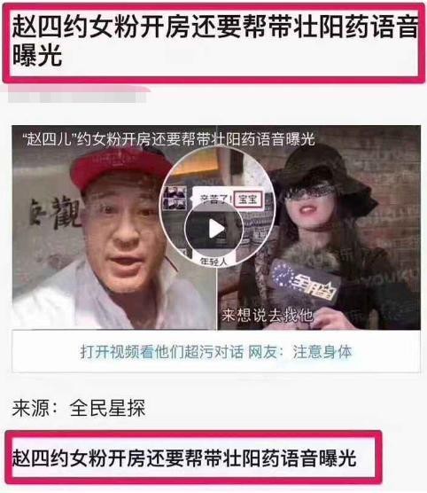 “赵四”出轨女粉丝,要求女方开房自带壮阳药,迷妹贴钱陪睡