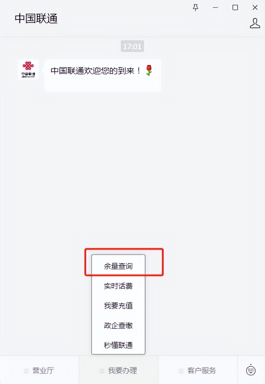 打开微信,在搜索栏输入中国联通公众号并关注,关注后还需要绑定自己的联通卡,绑定按照页面提示操作即可,进入中国联通公众号主界面,点击页面的余量查询,就可以看到实时话费和当月可用余额了。